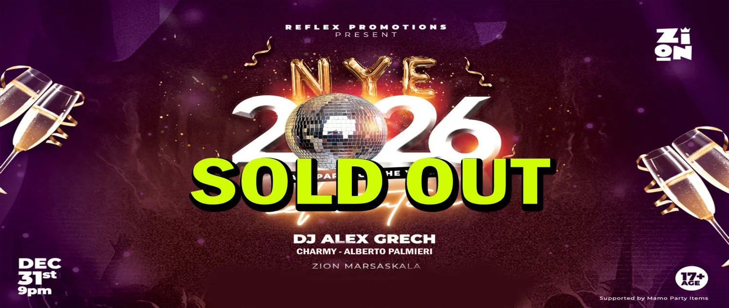 Reflex Promotions proudly present the DJ Alex Grech NYE 2026 Party @ Zion, Mscala on Wednesday 31 Dec 2025.